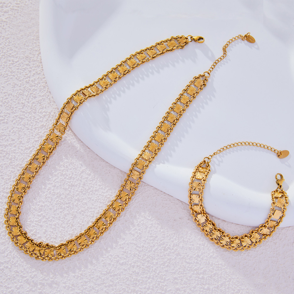 French New Creative Design Sense Copper Gold-plated Texture Bracelet Necklace Multi-layer Stitching Wide Versatile Jewelry suit