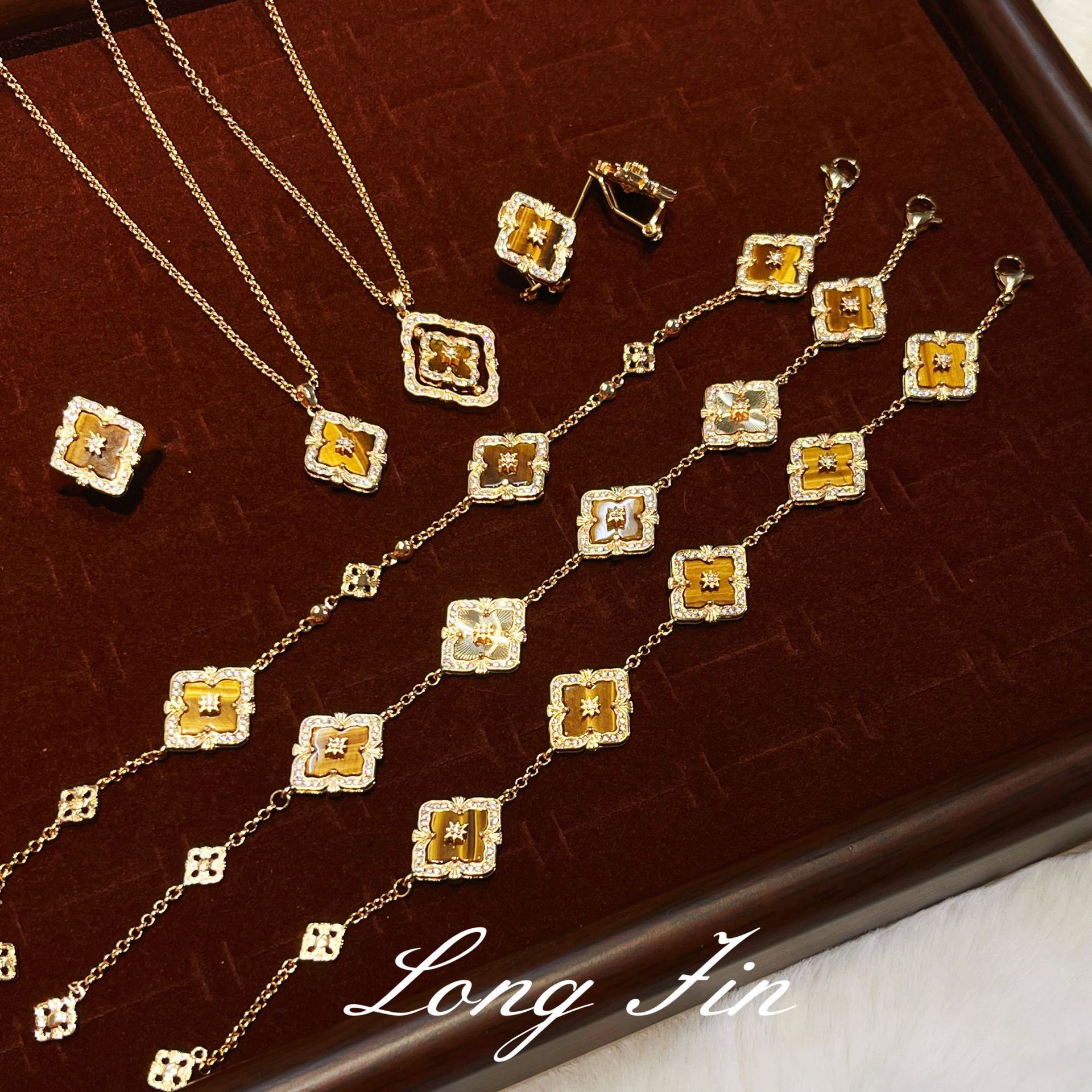 Flower Necklace Women's Light Luxury Easiest for Match Bracelet Shijia Earrings High-End Small Fresh Ring Fashion Jewelry Set