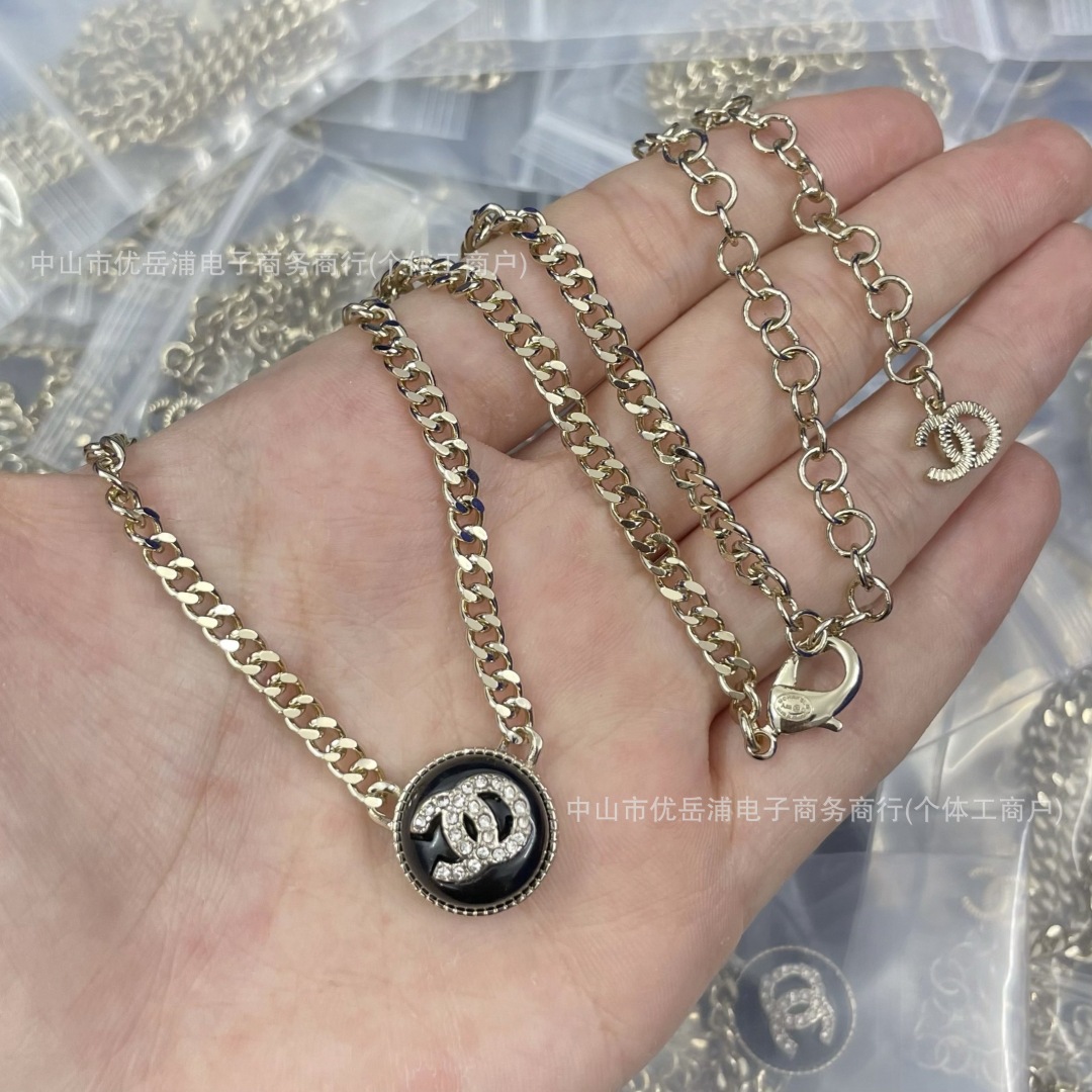 Authentic Real-Shot Chanel Double C Round Black Button Set Necklace for Women, Chanel Grandma Fashion Earrings Wholesale Dropshipping