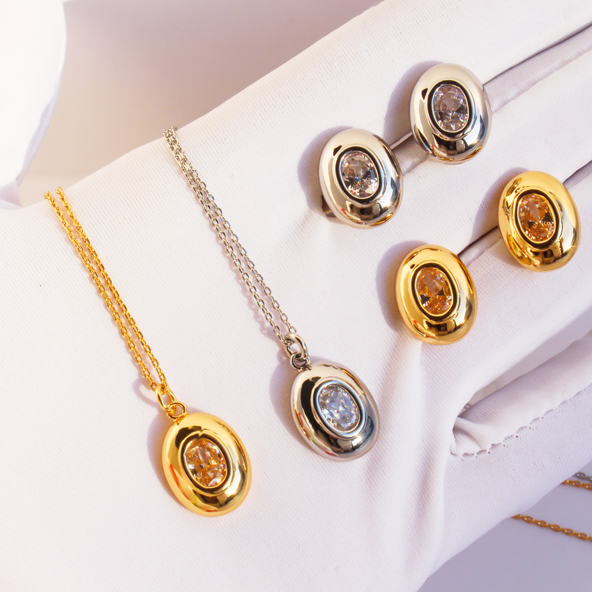 Baoli Original Normcore Design Oval Diamond Pendant Exquisite Thin Chain Long Necklace Fashionable Earring Set 02