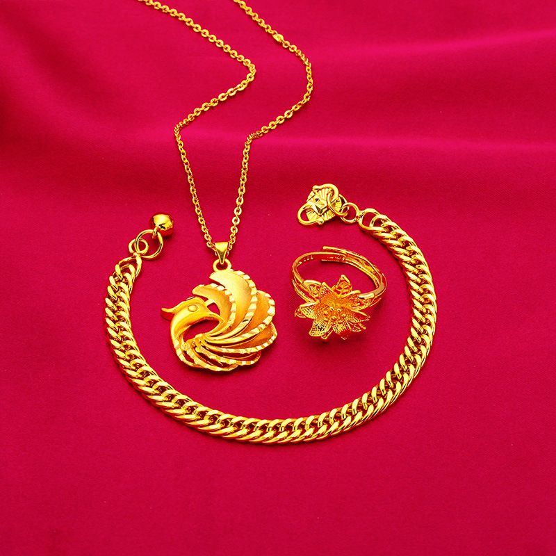 Peacock Set Necklace Set Chain Vietnam Sand Gold Women Peacock Pendant Necklace Ring Boss Bracelet Women Wholesale