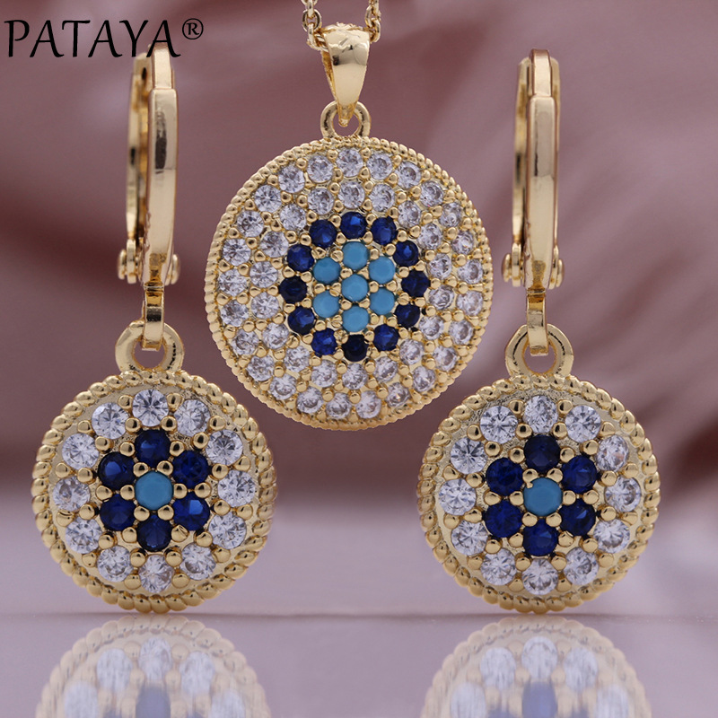PATAYA new round earrings pendant necklace champagne gold natural zircon women's fashion fine jewelry suit