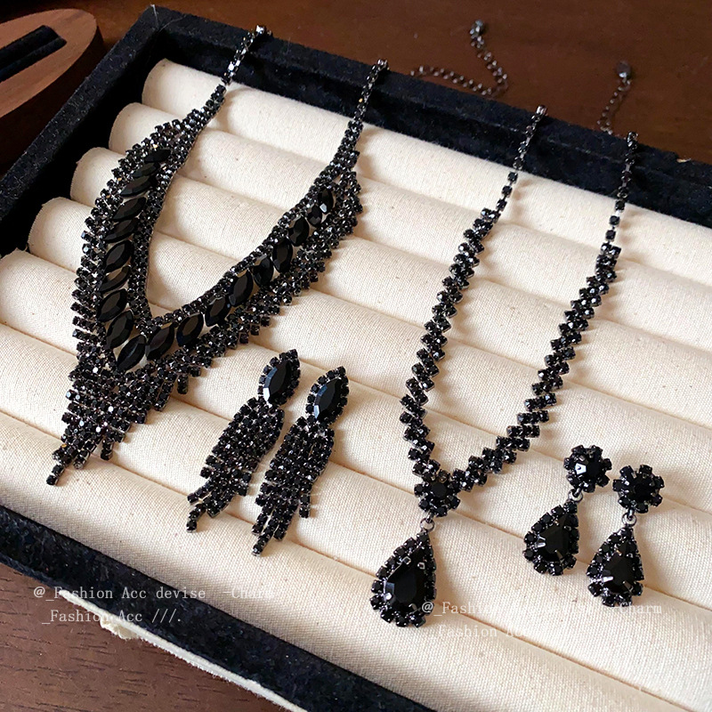 Diamond-encrusted water drop pendant earring necklace suit high-end luxury dress clavicle chain exquisite fashion temperament jewelry