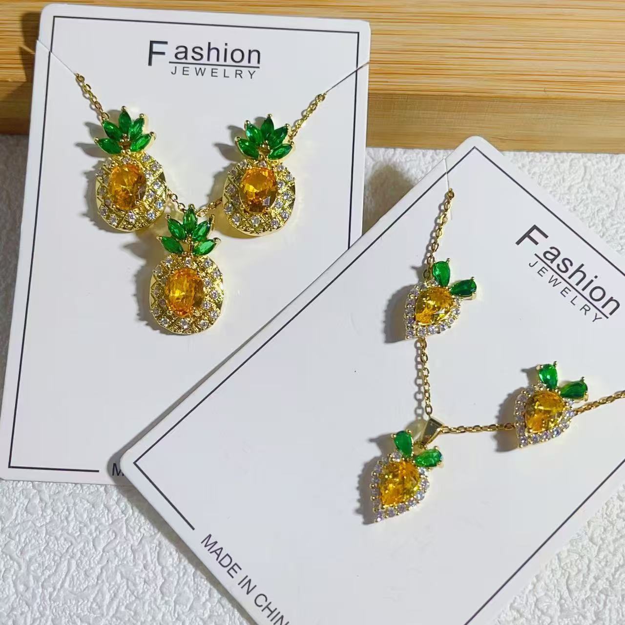New Fanta Stone Yellow Diamond Pineapple Necklace Earrings Jewelry All-match Light Luxury Design Pineapple Pendant Earrings suit