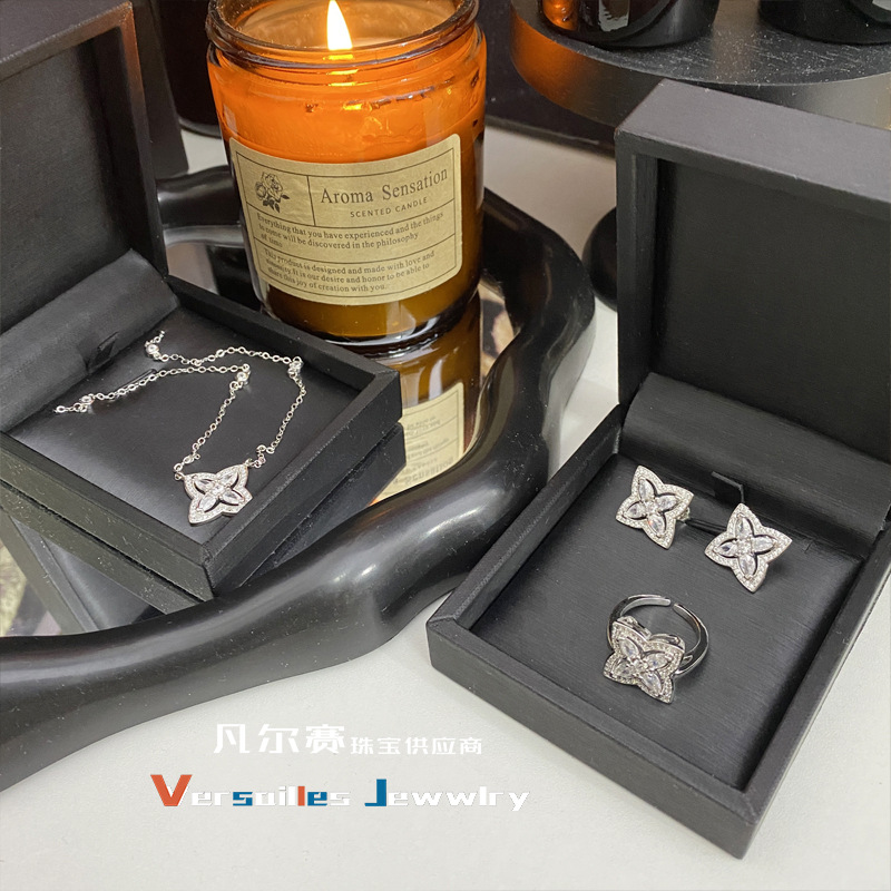 Versa Star Sandalwood Key Same Style Marquise Diamond Debi Lotus Earrings Seiko Version Accessible Luxury Four-Leaf Clover Set for Women