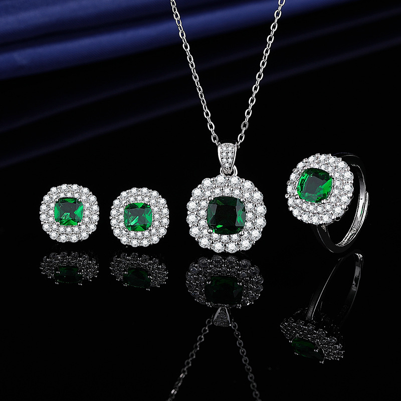 European and American New Cross-border Three-piece Suit High-grade Emerald Necklace Pendant Ring Earrings Full of Diamond Women's Jewelry
