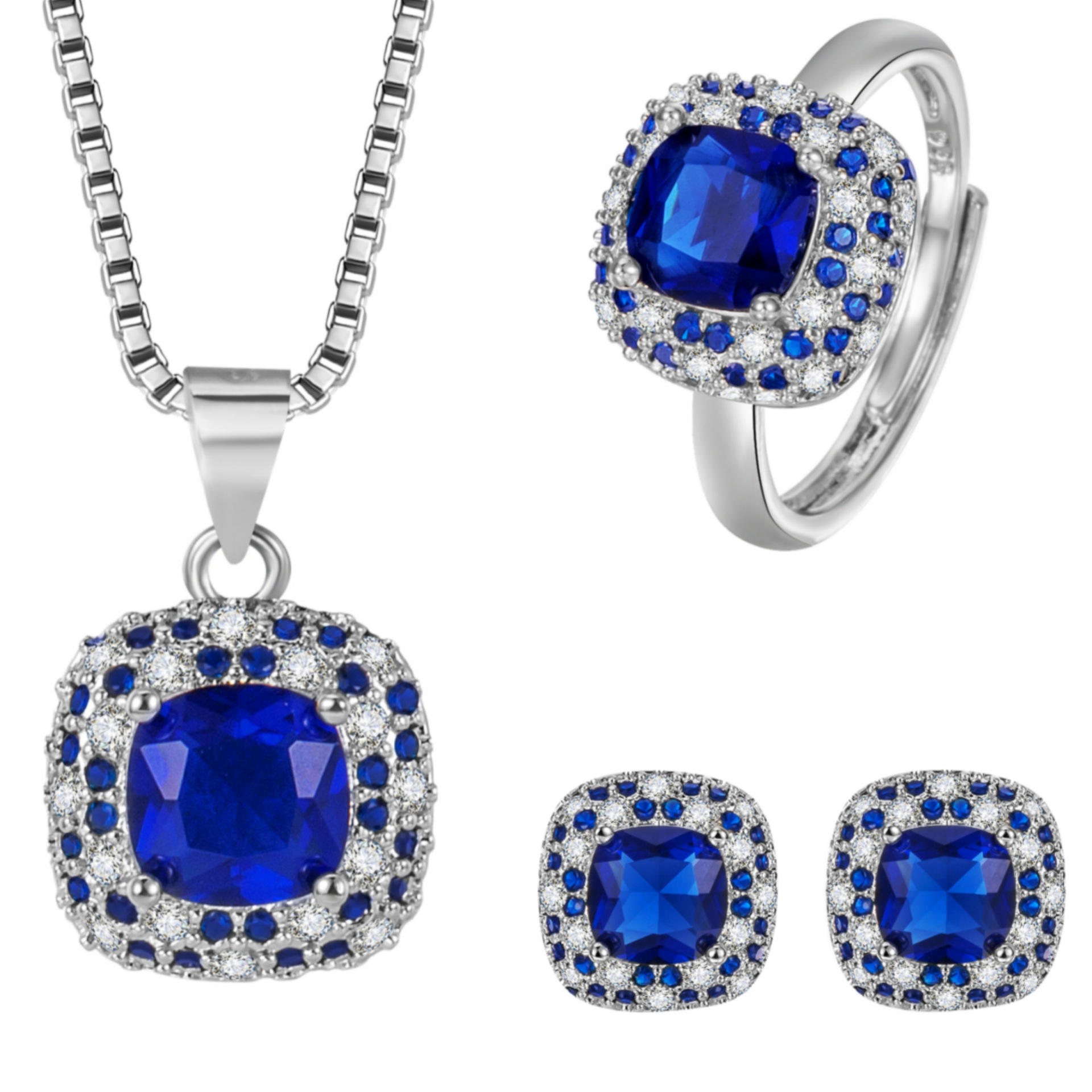 High-end Luxury Blue Tanzanite Ring Earrings Pendant Necklace Plated 18K White Gold Set with Sapphire and Diamond Set