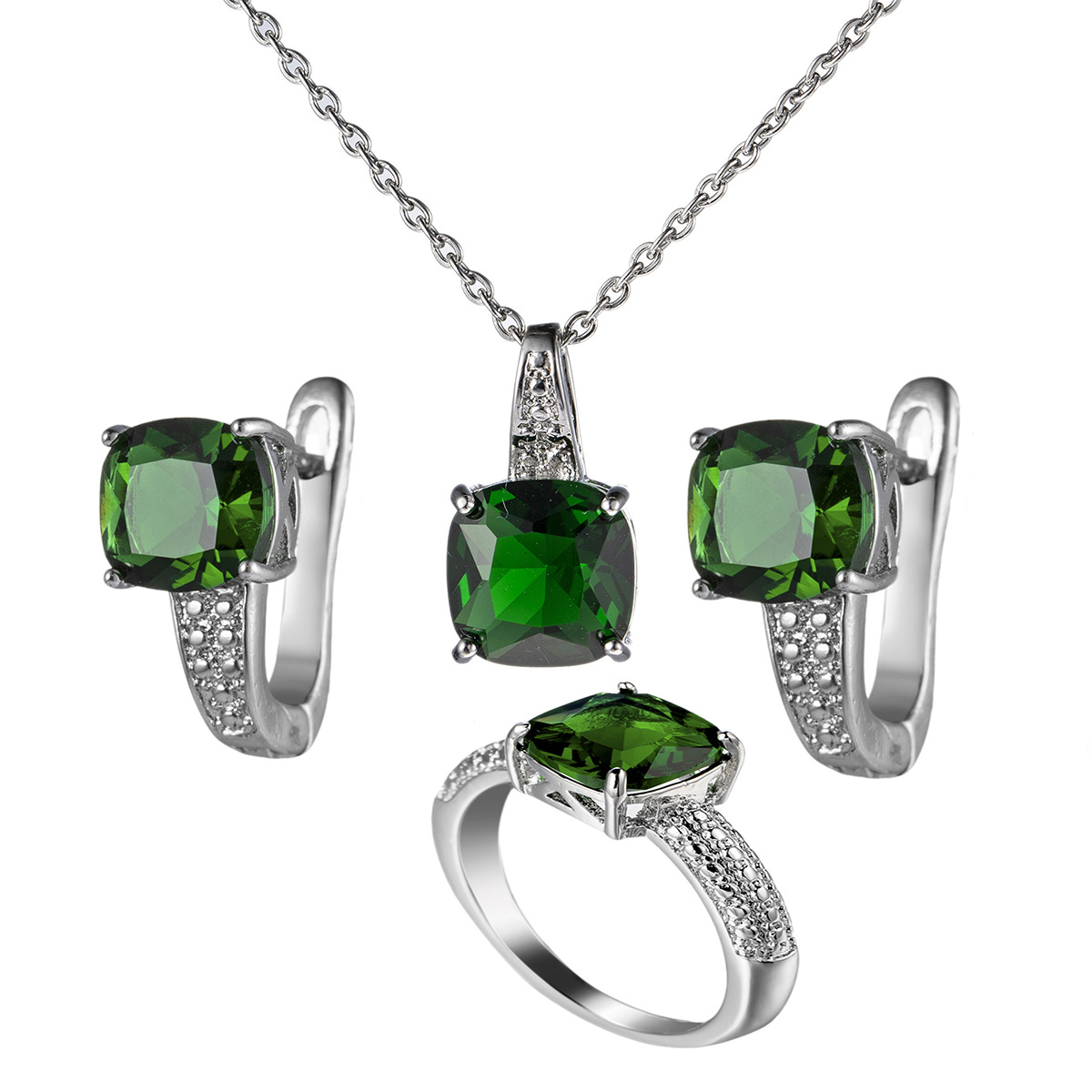 Cross-border Europe and the United States with zirconium diamond earrings ring necklace three-piece fashion zircon earrings earrings earrings jewelry manufacturers wholesale