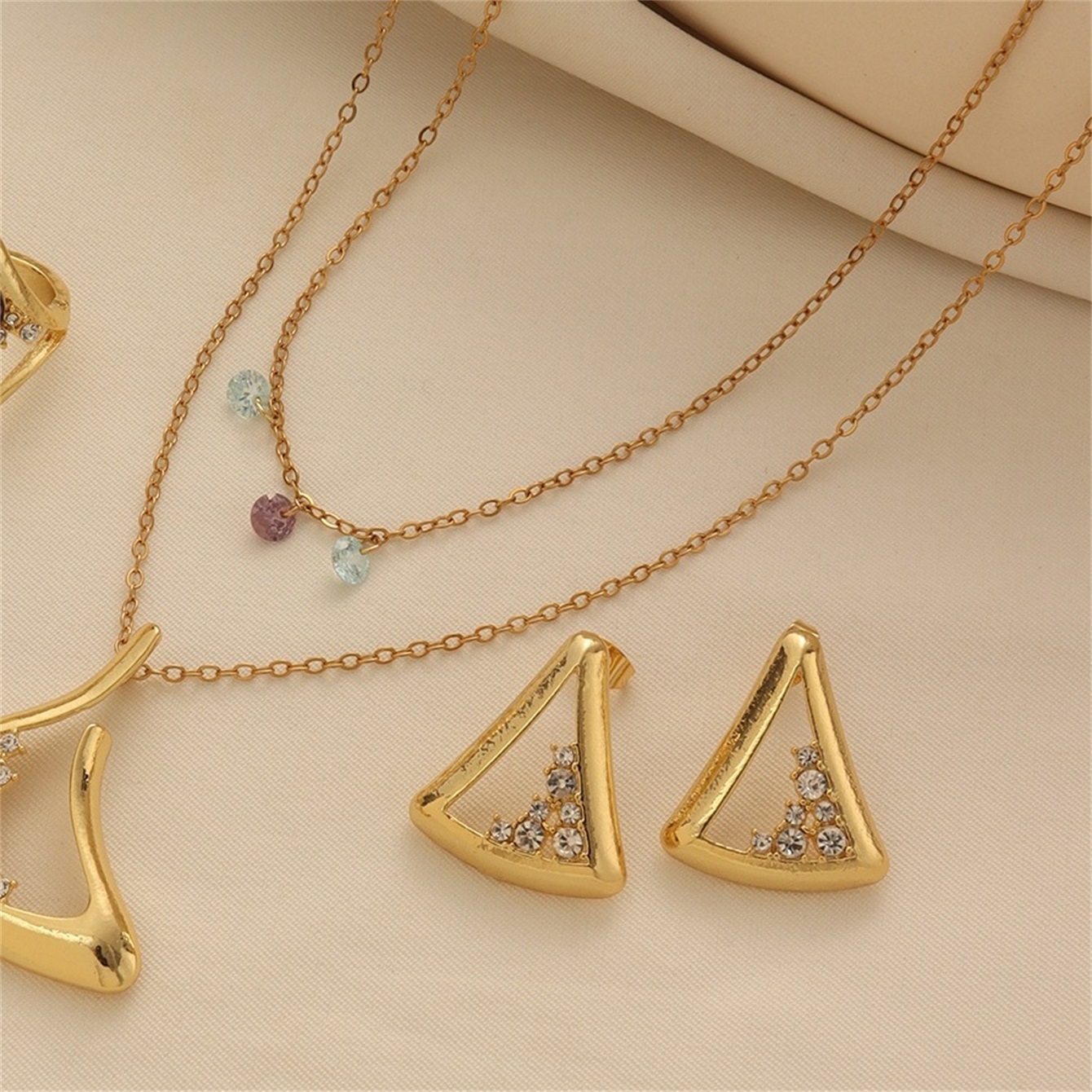 Cross-Border Hot Selling Fashionable and Simple Copper Alloy Plated Real Gold Geometric Pendant Clavicle Chain Niche Fresh Jewelry Set