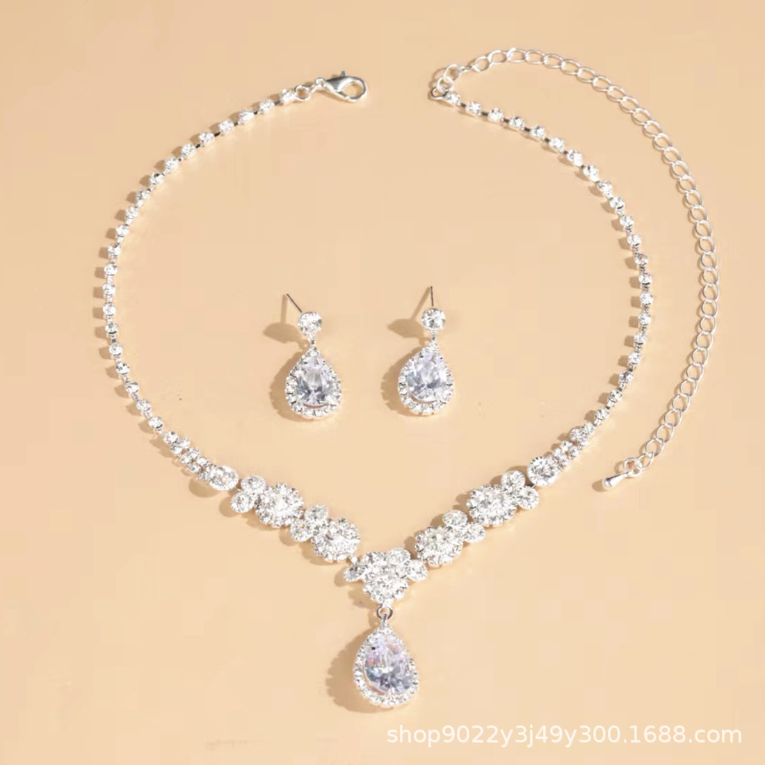 Full diamond zircon Angel tear drop necklace earrings two-piece bridal wedding jewelry shooting jewelry suit wholesale