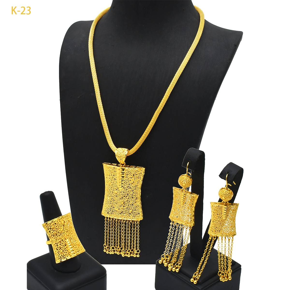 Middle East Hot Selling Copper Alloy Three-Piece Necklace Earrings Ring Bridal Jewelry Dubai Women's Wedding Jewelry Wholesale
