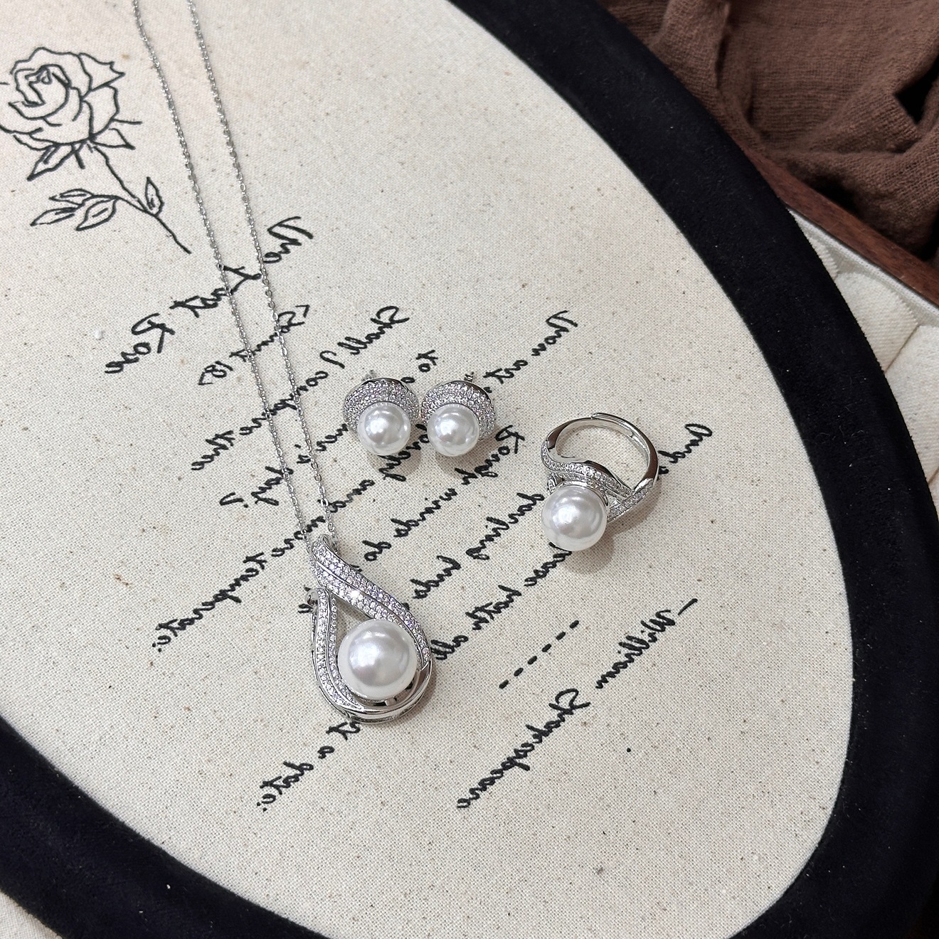 Xiaohongshu's Best-Selling Micro-Inlaid Zircon Necklace, Niche Light Luxury Irregular Ring, Simple and Versatile Pearl Earring Set