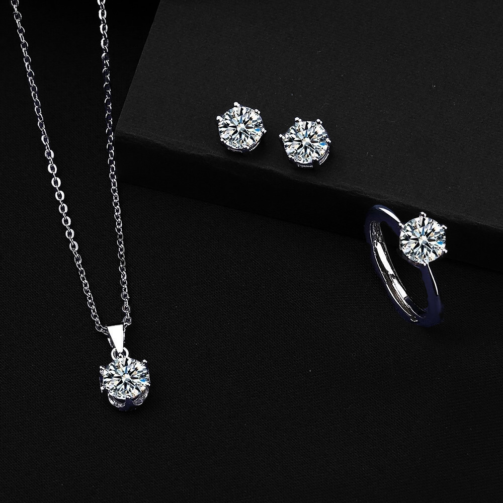 Simple classic six-claw zircon suit earrings necklace ring three-piece set of small fresh jewelry suit direct supply