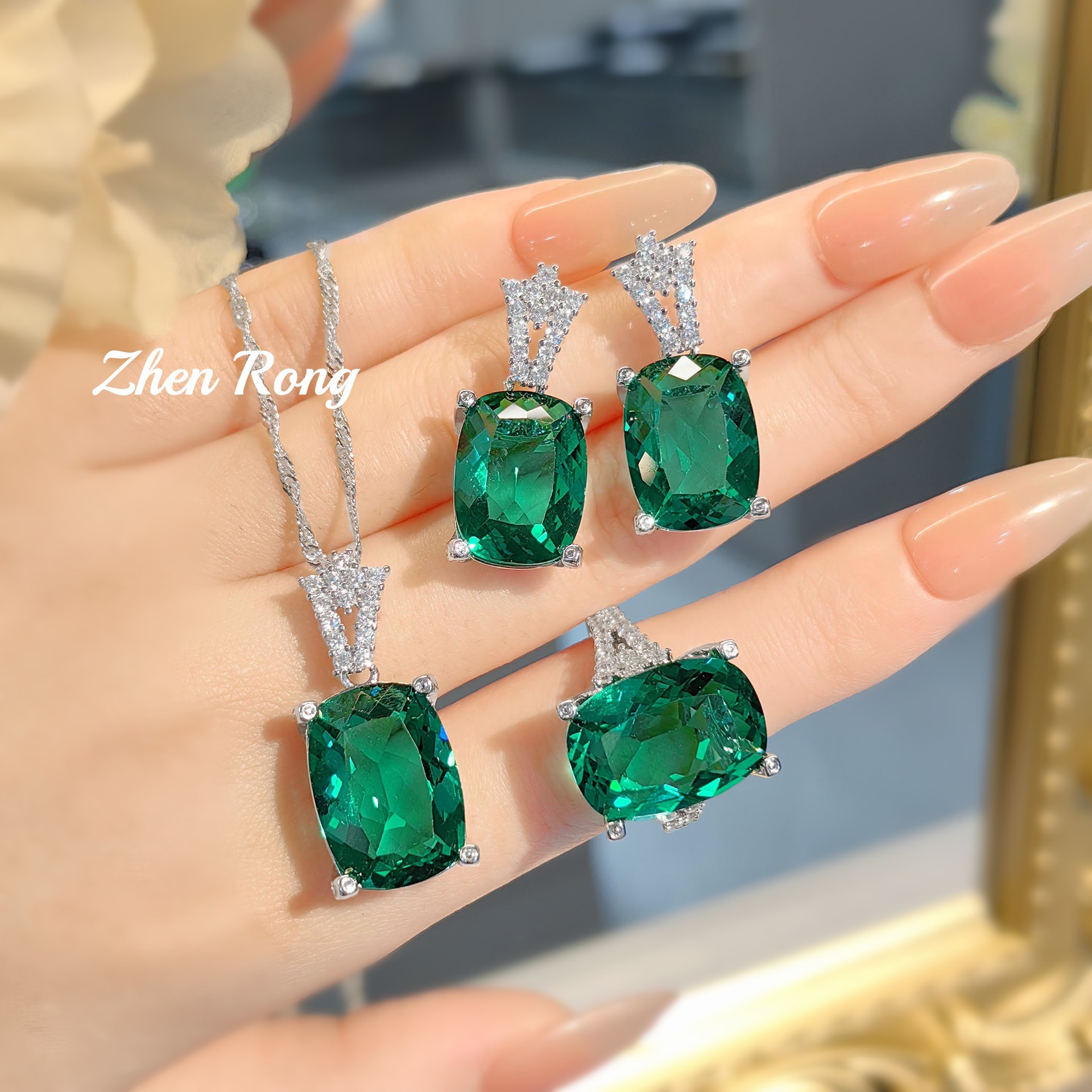 Fashion Luxury Paraiba Green Ring with High Carbon Diamond Temperament Crown Pendant Gemstone Stud Earring Set for Women