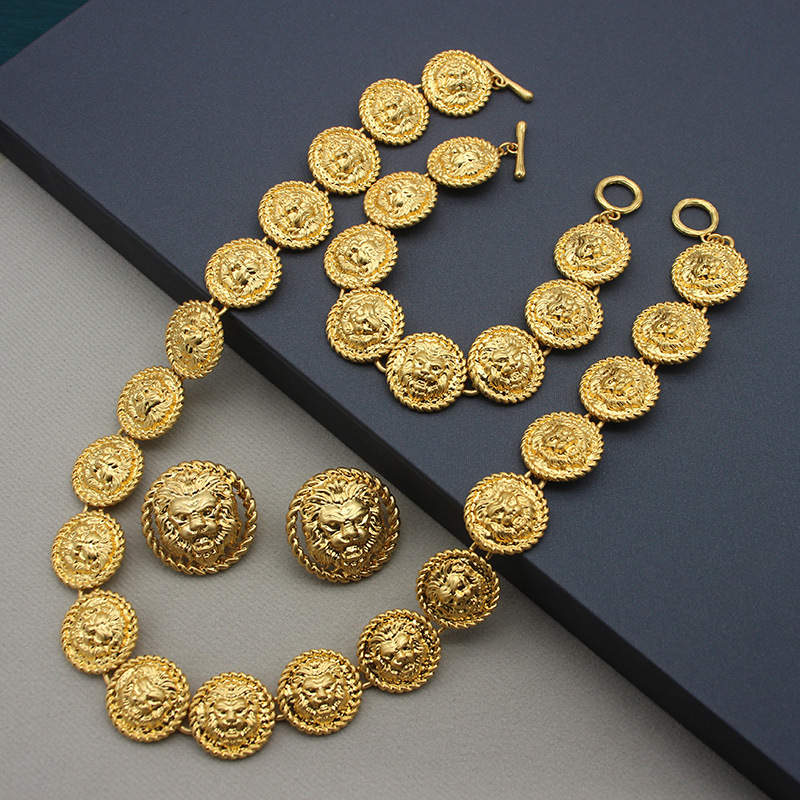 American Ank Classic Lion suit Plain Gold Texture Middle Ancient Jewelry with High Cost Performance