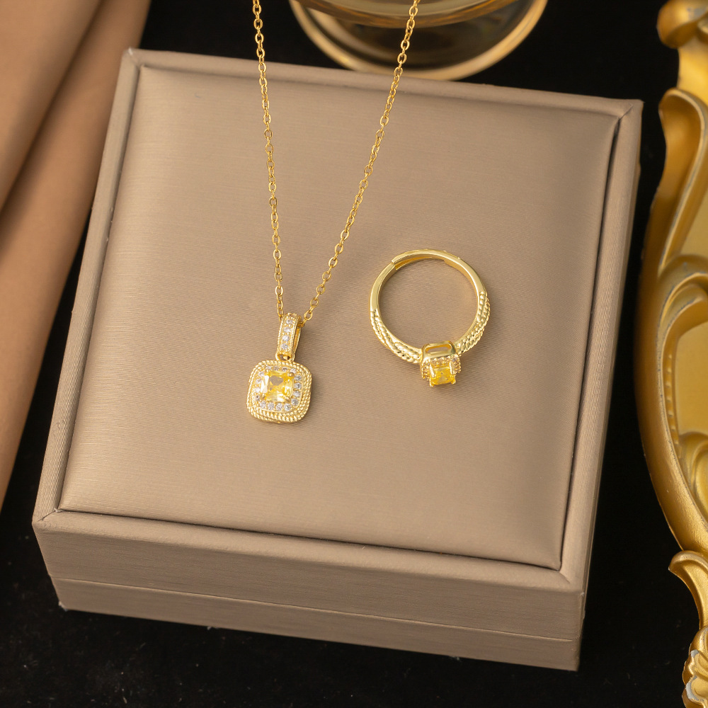 Internet Celebrity Hot Selling 2023 Explosive Small Square Sugar Necklace Collarbone Chain Ring suit Design Sense Niche Ins Style Jewelry