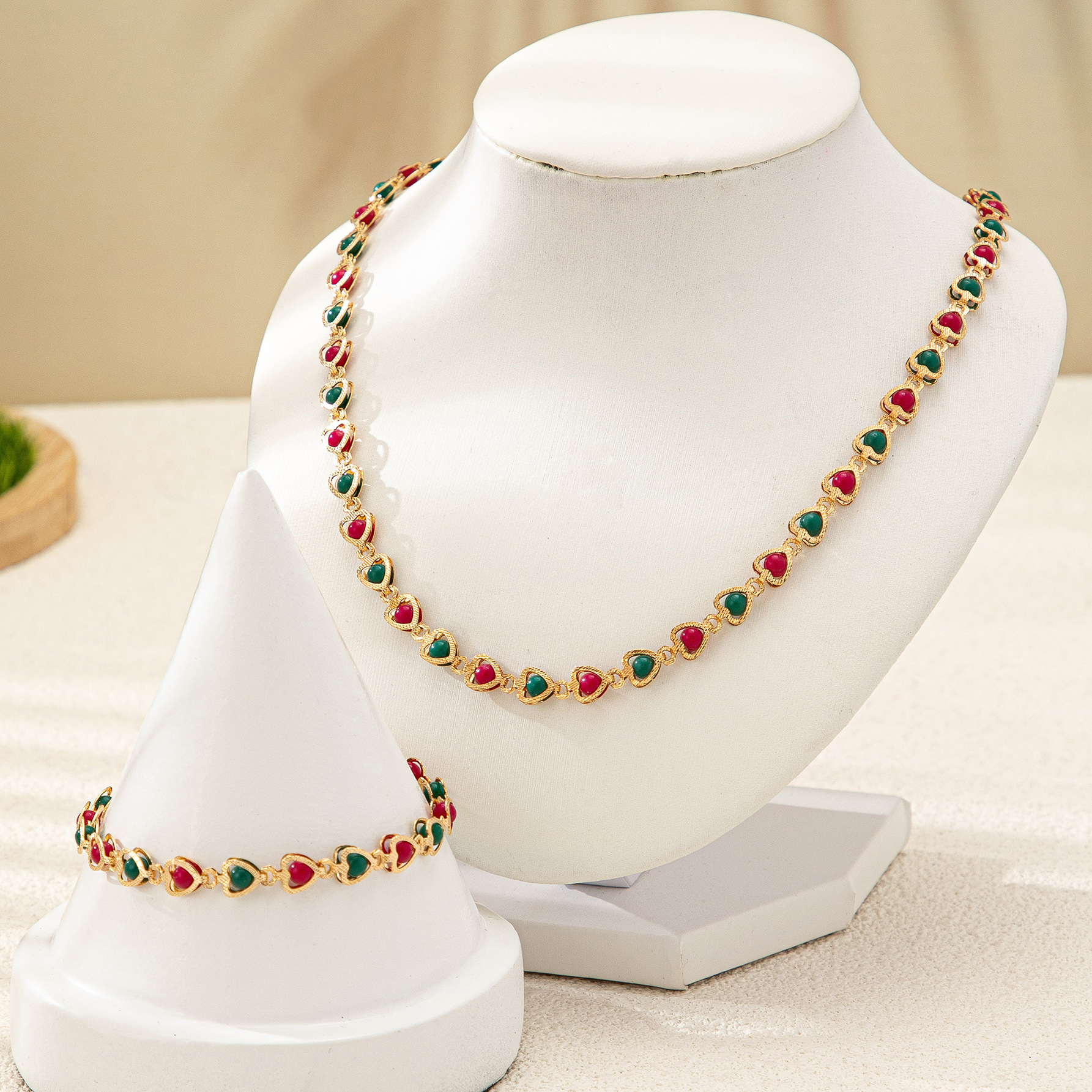 European and American Jewelry Set Fashionable Women's High-End Heart Flower Beaded Necklace Girl Small Flower Choker Clavicle Chain