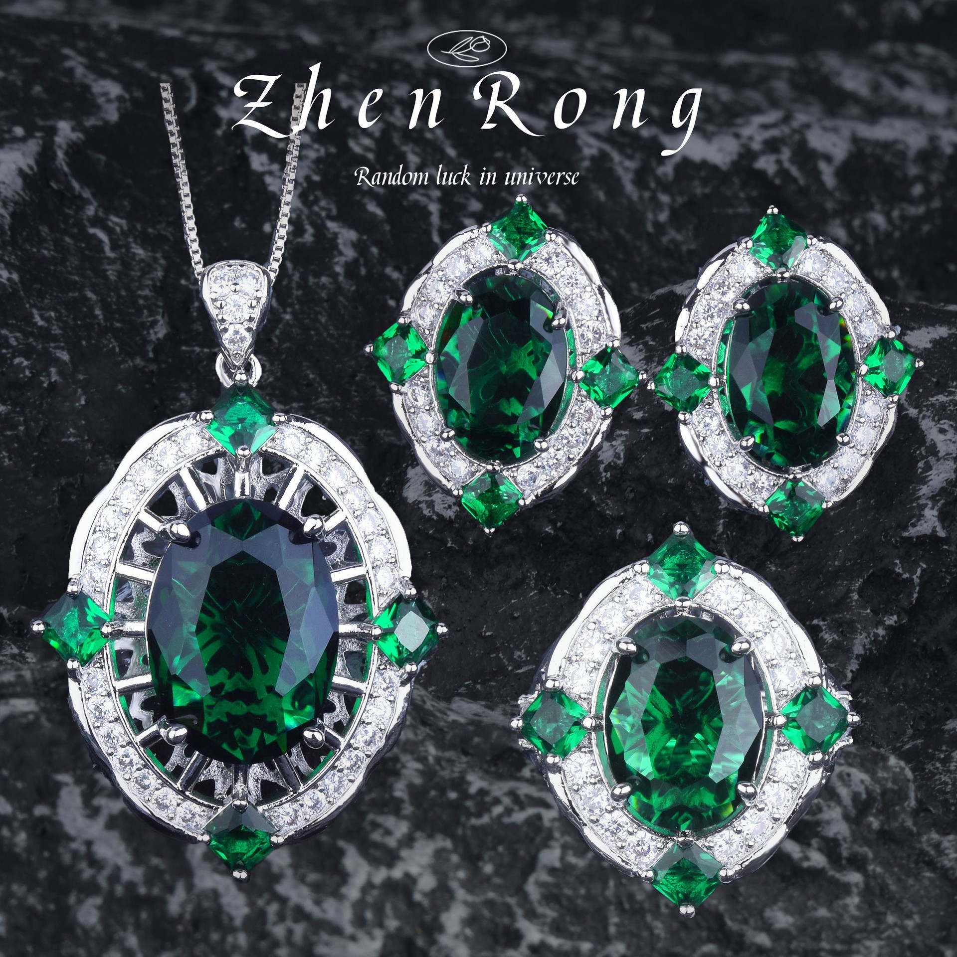 European and American Luxury Heavy-Duty Back Cover Design Emerald Pendant Necklace Pigeon Blood Ruby Ring Earrings Color Treasure Set