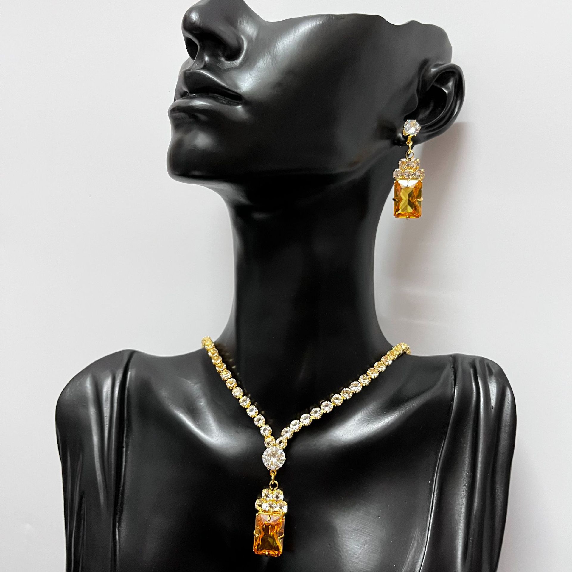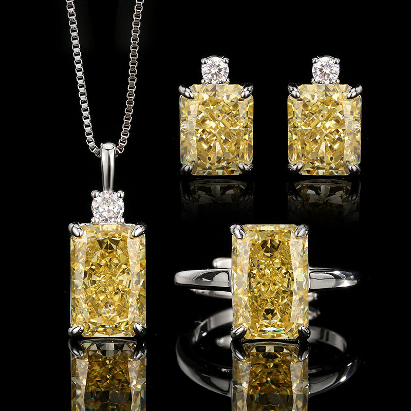 Jewelry Jewelry Set Earrings Ring Necklace High Carbon Diamond Yellow Diamond Ice Flower Rectangular Women's Fashion Light Luxury Batch