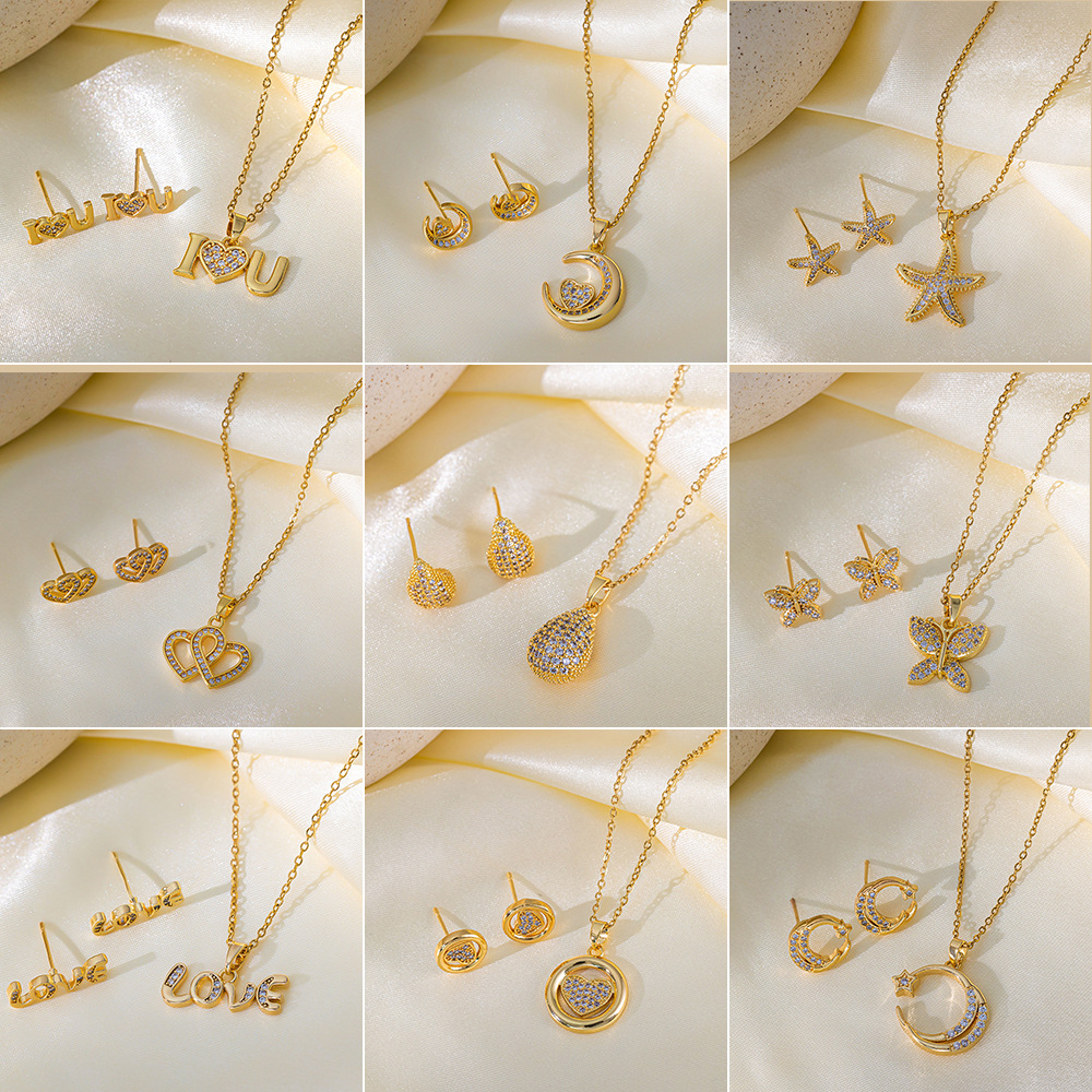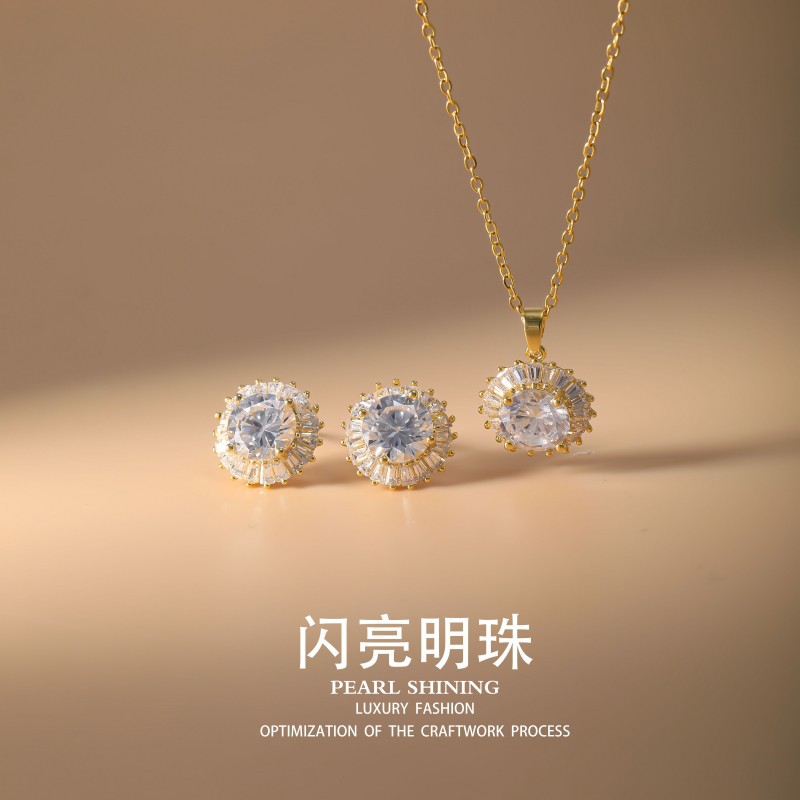 [suit] high quality Temperament Light Luxury High-end Jewelry Copper Plating Micro Earrings Necklace suit Combination Women