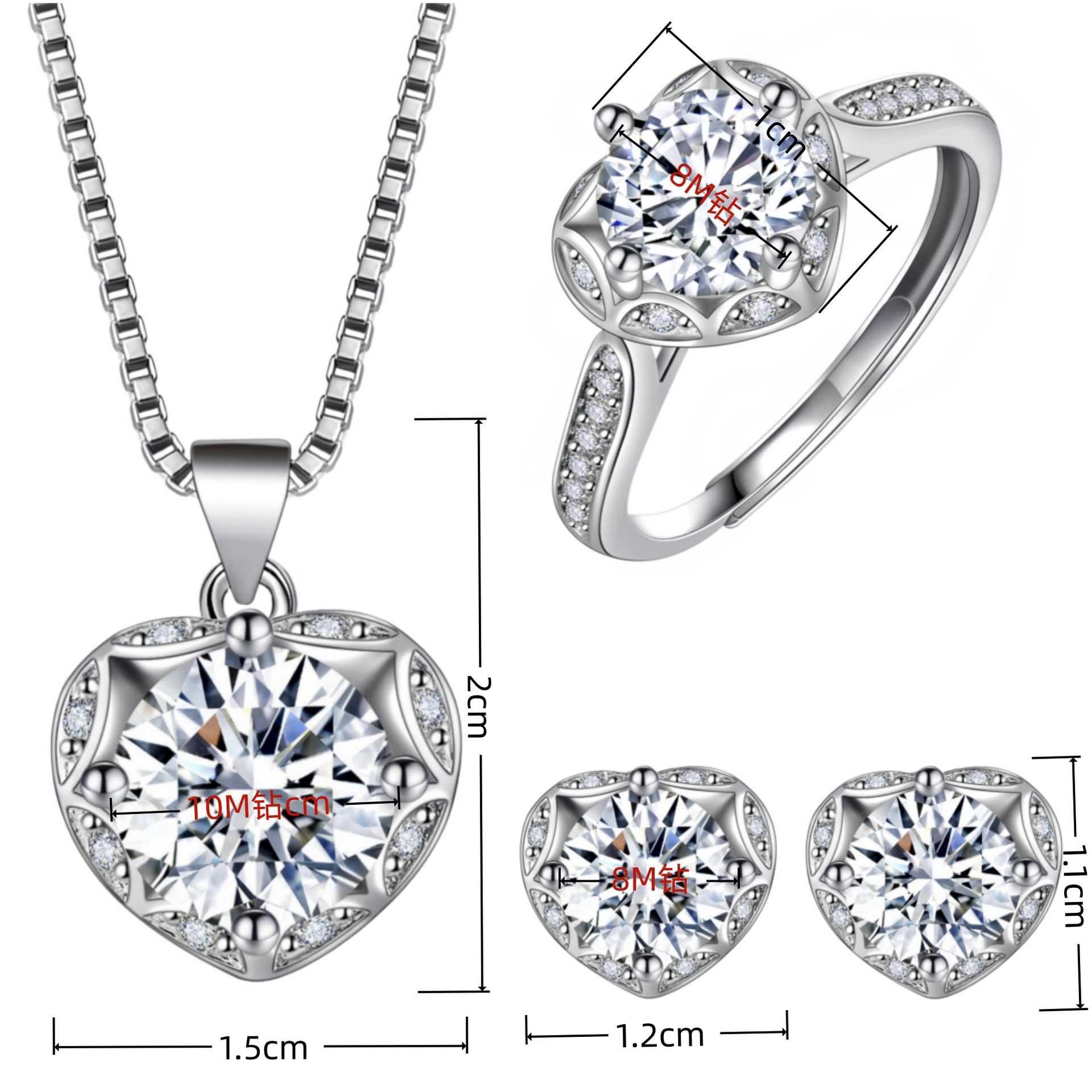 Shake Voice Live Broadcast Eight Heart and Eight Arrows Mosan Diamond Ring Earrings Pendant Set Clavicle Chain Personalized Peach Heart Set