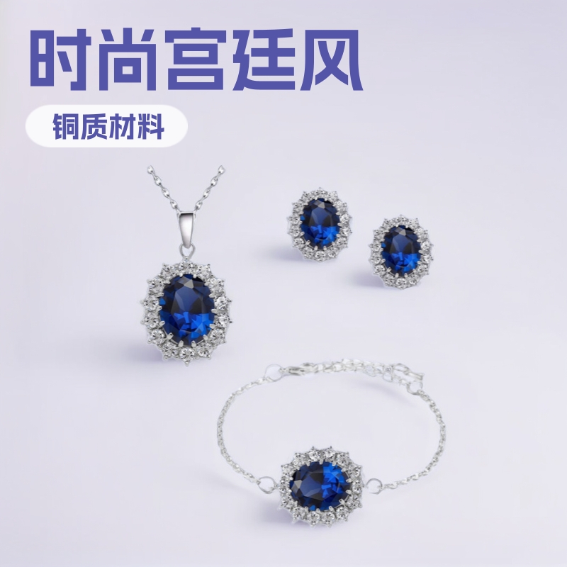 Quick Hand Shake Live Supply Fashion Jewelry Set Oval Earrings Necklace Bracelet Three-piece Set Available Watch