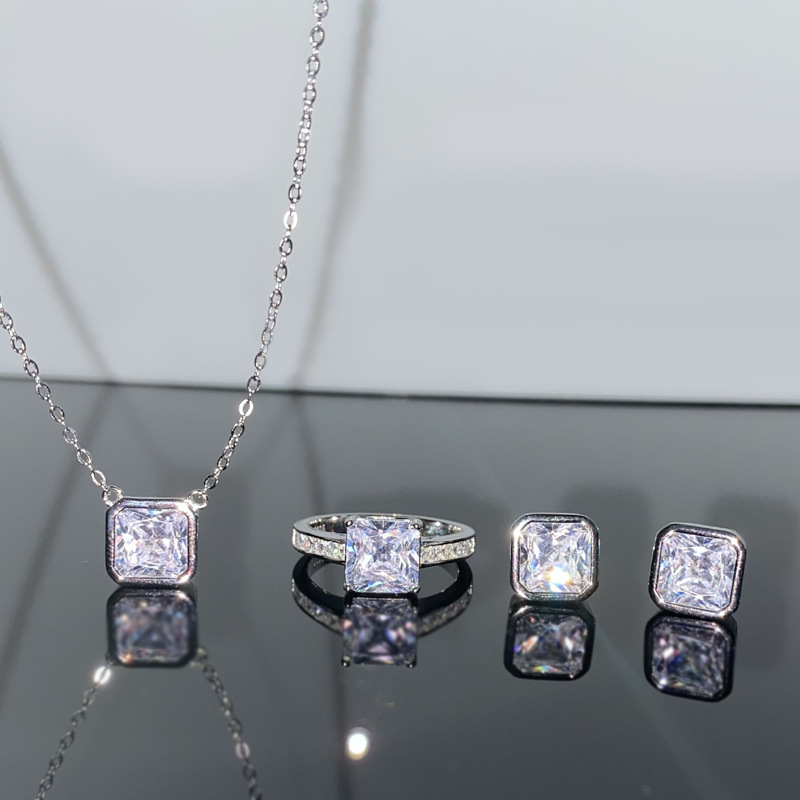 Versa European and American Seiko Set Plated 18K Platinum 8*8 Princess Square Pillow Asce Fashion High Sense Pendant
