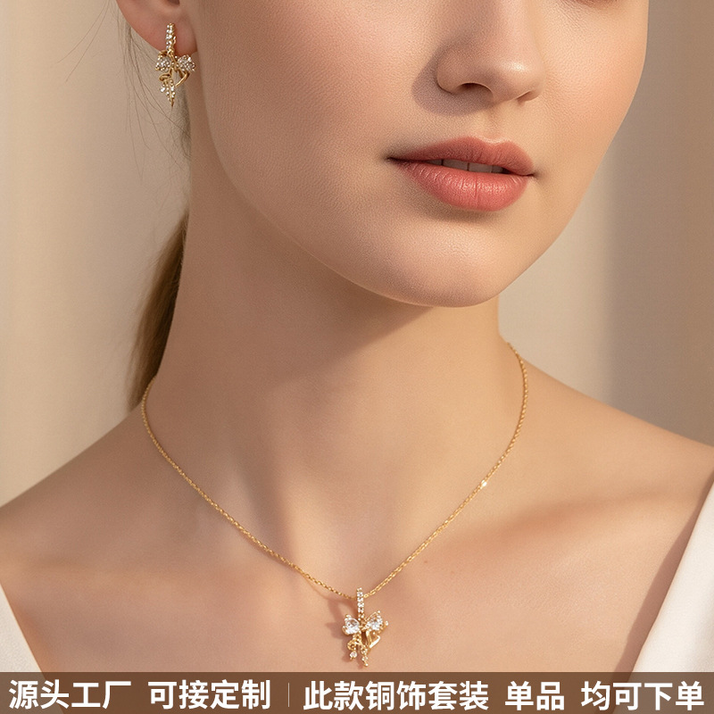 Maimi Bow Jewelry Set Necklace Jewelry Niche Design Earrings Light Luxury High-End Clavicle Chain Wholesale