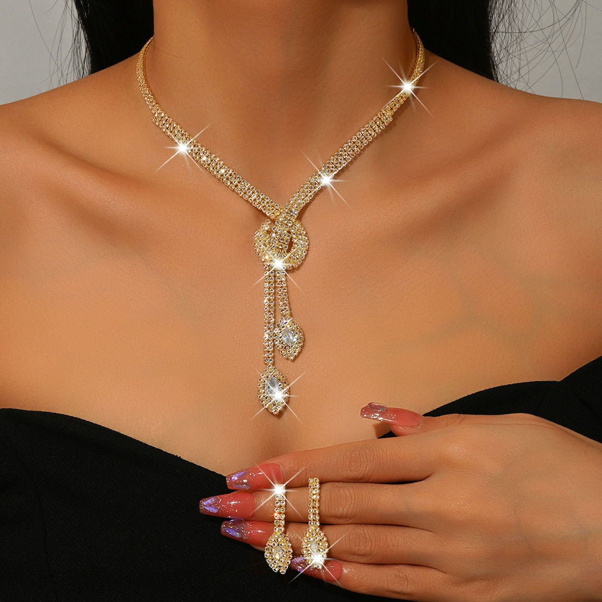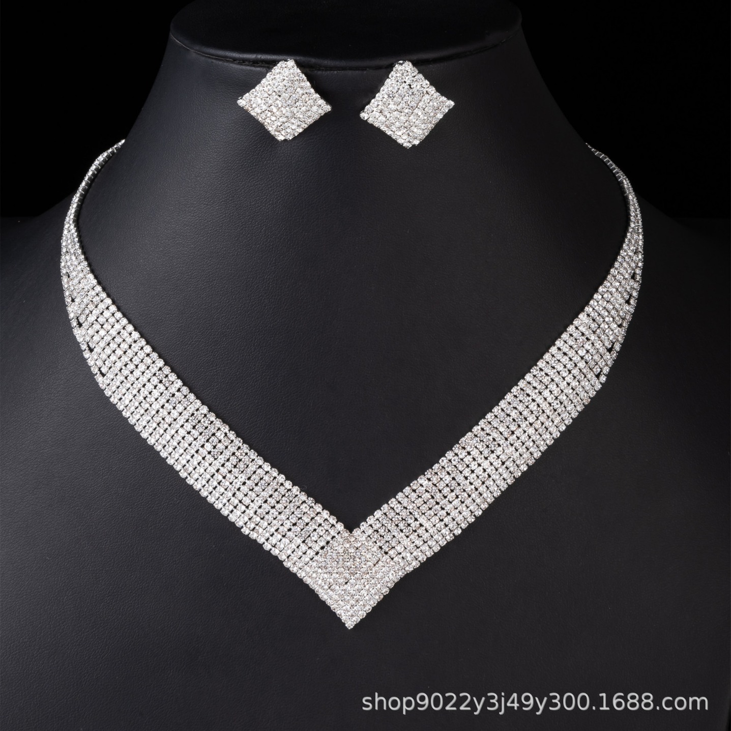 Cross-border supply wholesale European and American retro exaggerated temperament simple rhinestone necklace earrings suit dress all-matching jewelry