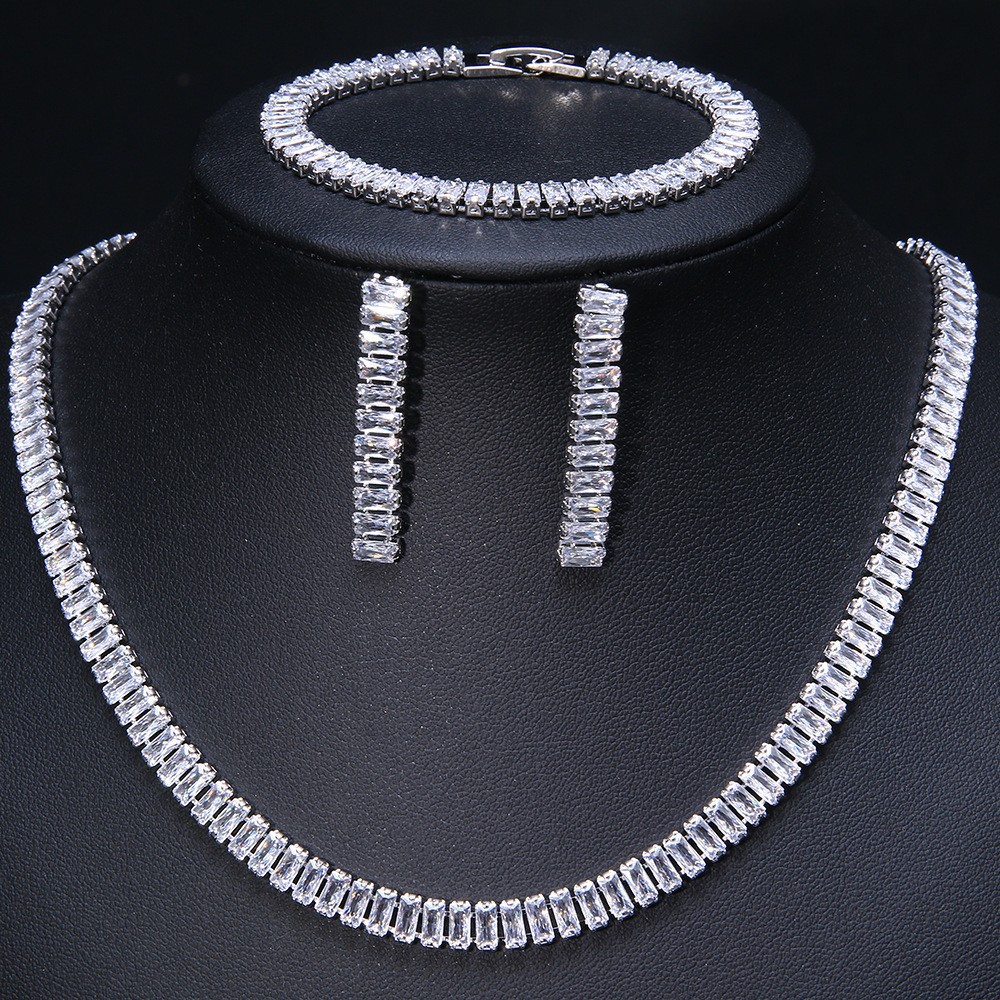 European and American Hot-Selling Bridal Neck Zircon Necklace Zircon Necklace Bracelet Three-Piece Set Zircon Jewelry Set Wholesale