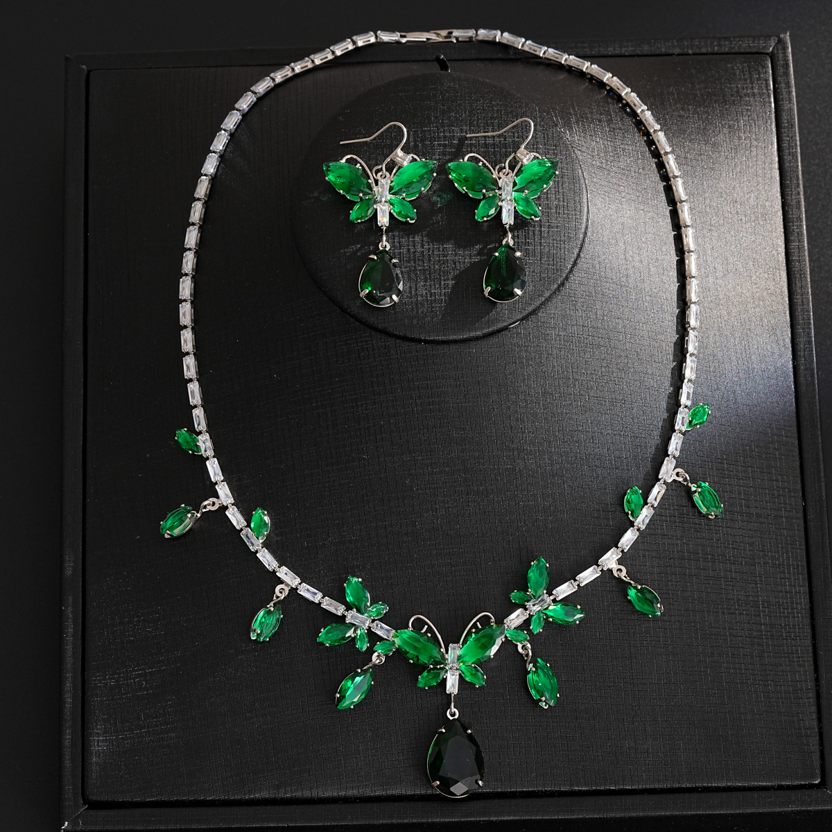 Diamond Butterfly Water Drop Pendant Earrings Necklace Set Niche Fashion Versatile Clavicle Chain Light Luxury High-End Necklace