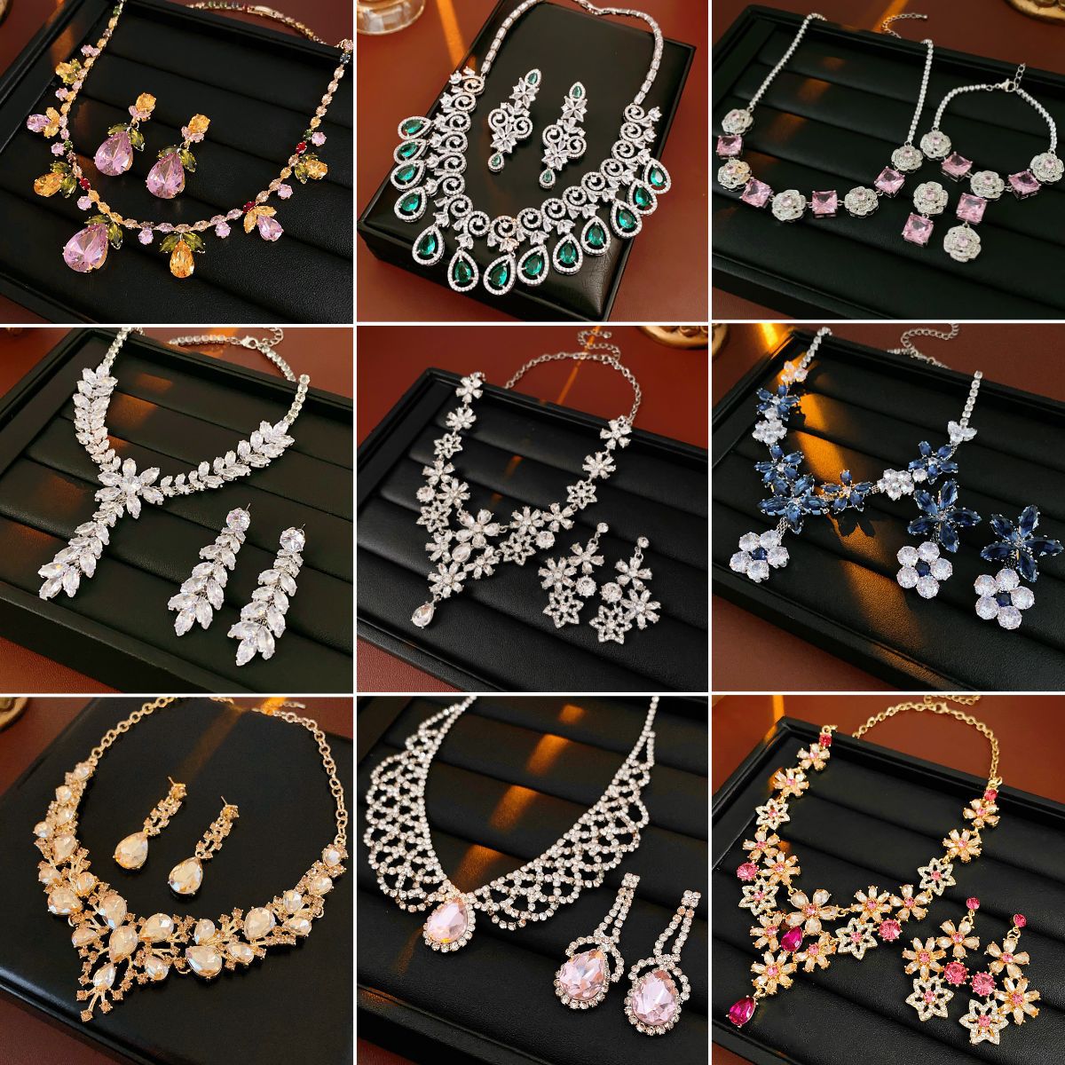 Cross-border European and American Fashion Star Zircon Jewelry Set Women's Ring Stud Necklace Female Jewelry Accessories Wholesale