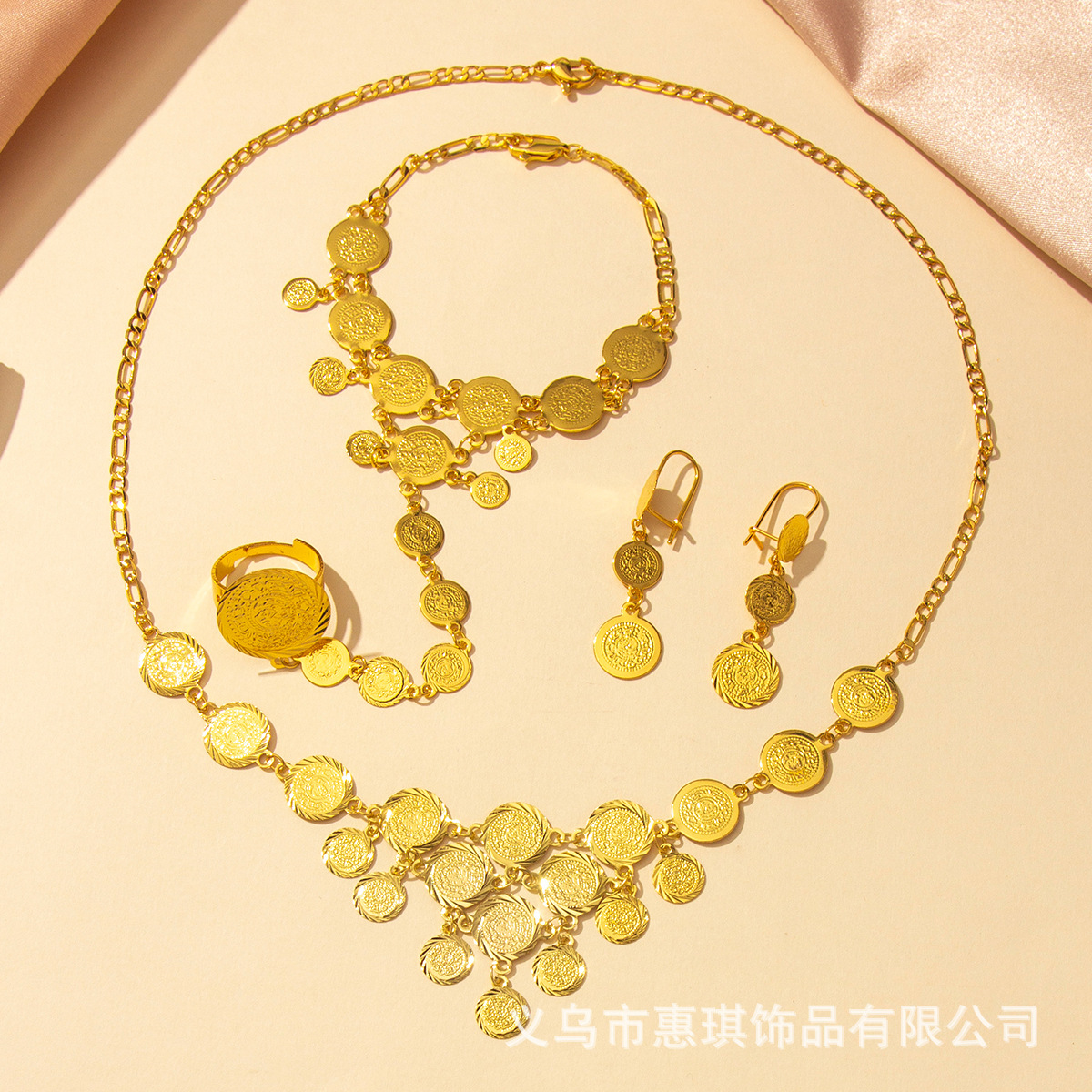 Middle East Bride Wedding Jewelry suit Round Coin Classic Gold Plated Bohemian Tassel Coin Jewelry