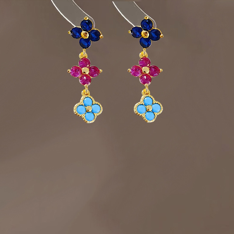 New Colorful Four-Leaf Clover Necklace Bracelet Earrings Set Fashion Sweet Versatile Dopamine Flower Stud Earrings for Women