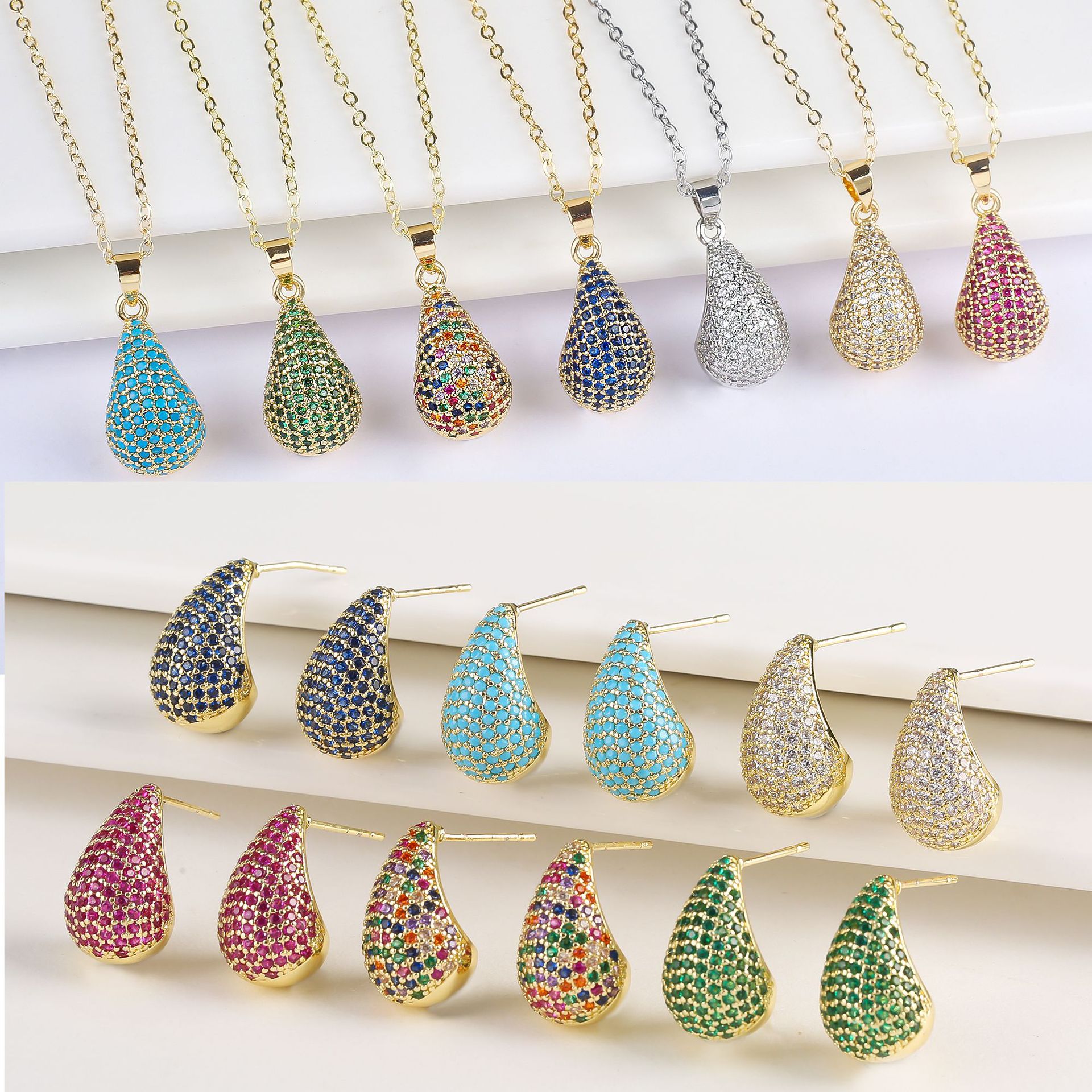 European and American Amazon Hot-selling Elegant Light Luxury Full Diamond Comma Drop Earrings Necklace suit Ladies Personalized Jewelry Batch
