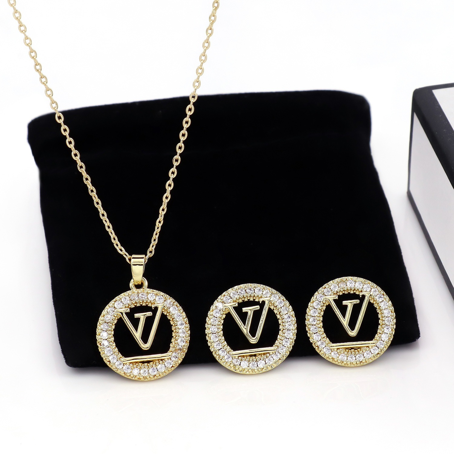 Cross-Border Popular Donkey Family Small Fragrant Diamond Necklace and Earrings Set European and American Simple and Versatile Clavicle Chain Set Decoration