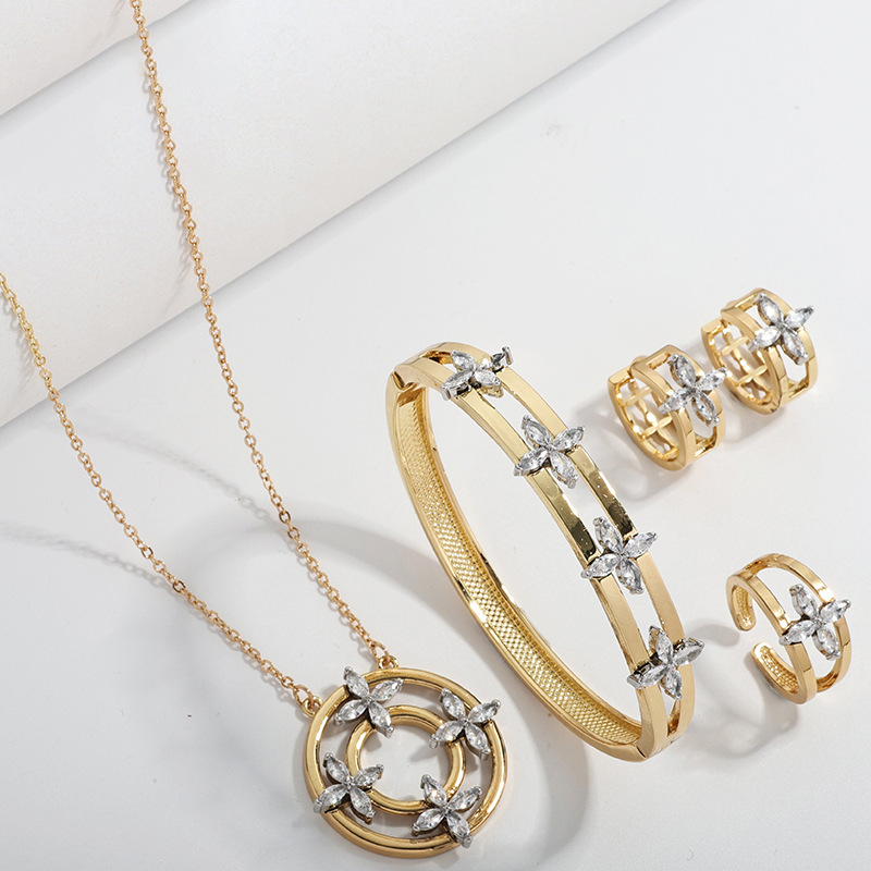 Four-Leaf Clover Jewelry Set, 4-Piece Set, Cross-Border Fashion, Elegant Micro-Inlaid Zircon Necklace, Factory Wholesale, Fashionable and Versatile