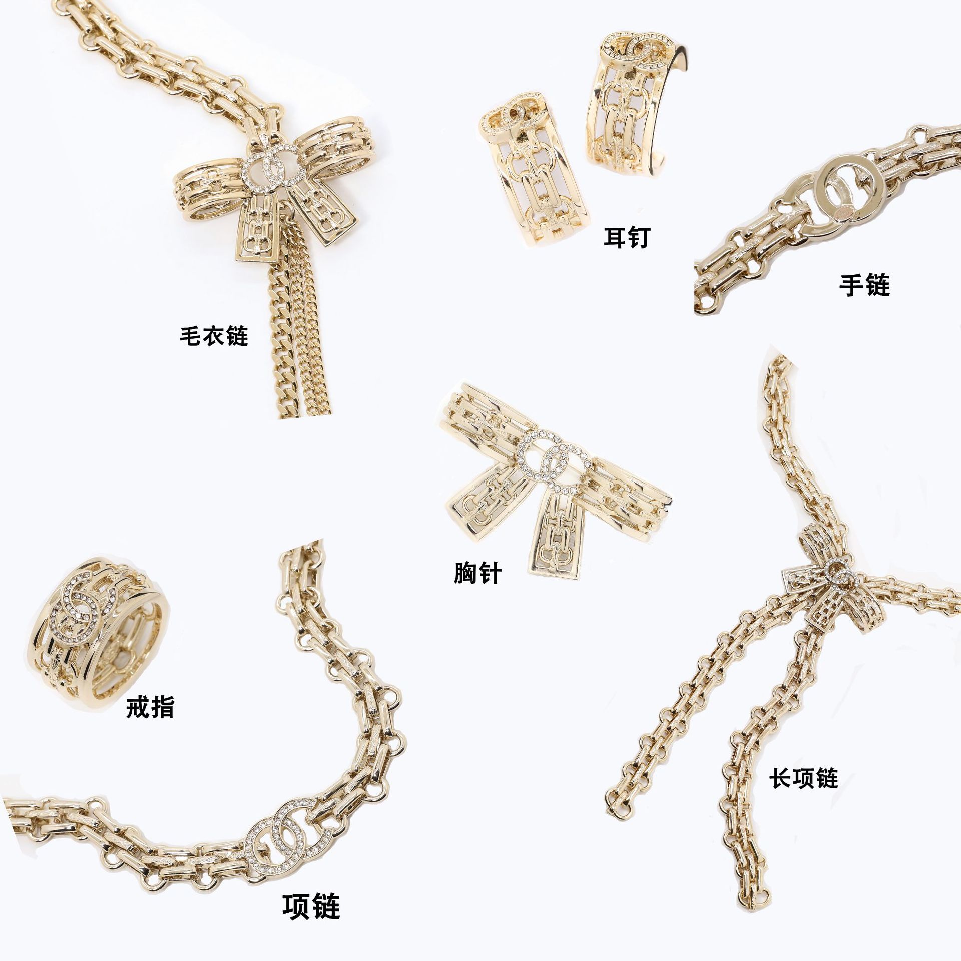 25K Chanel European and American Fashion Personality Exaggerated Cuban Hollow Bow Double Women's Jewelry Collection