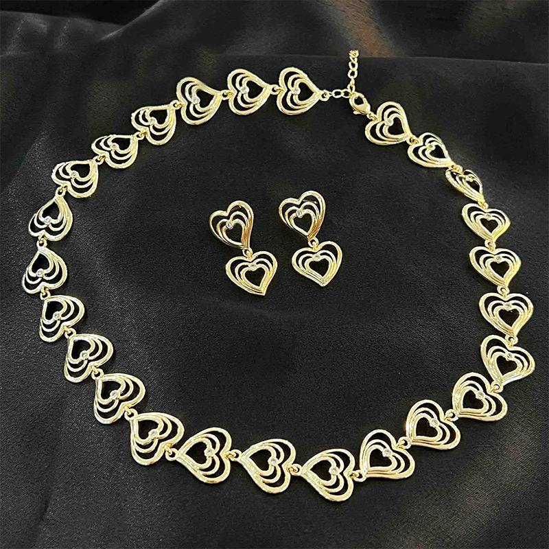 Cross-border hot whole row of Love necklace light luxury fashion gold plated heart-shaped earrings peach heart earrings a generation of hair