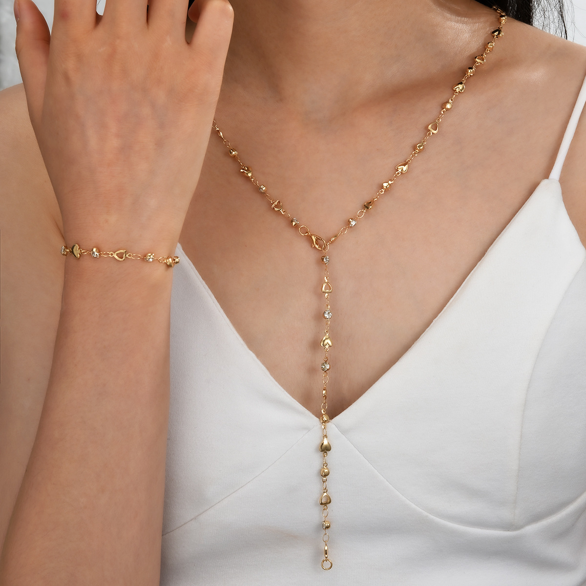 European and American Cross-Border Popular Retro Love Zircon Tassel Bracelet Necklace Set Decoration Simple High-End Jewelry Wholesale