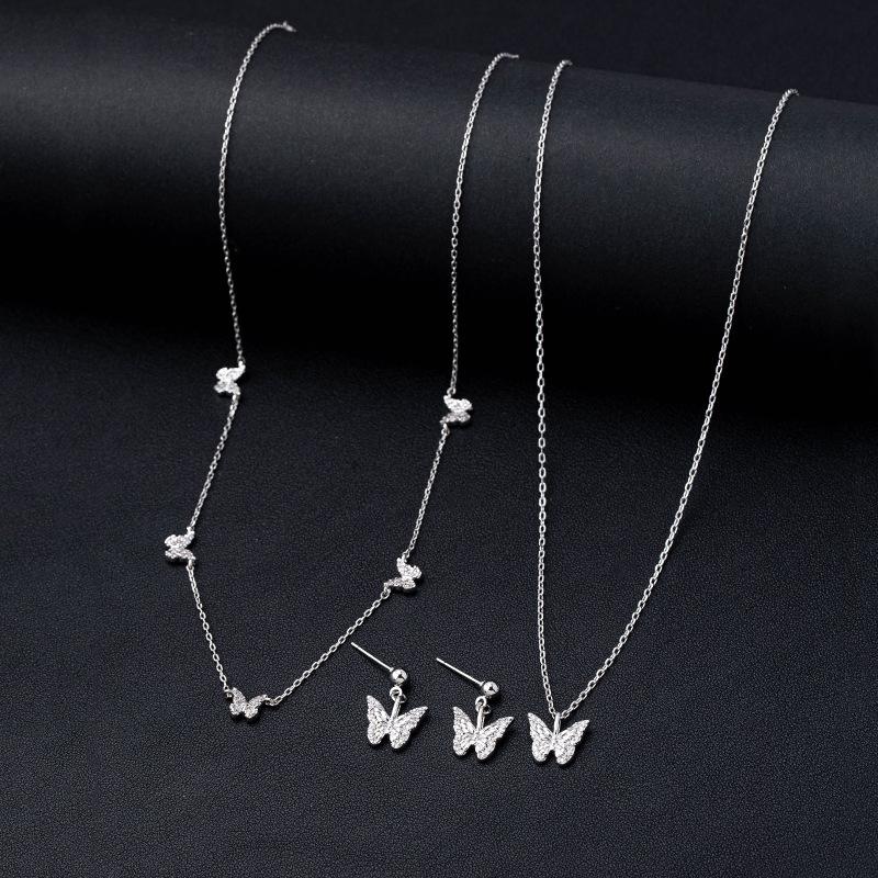 Light Luxury Elegant Versatile Super Shiny Butterfly Pendant Earrings Necklace Women Sweet Exquisite Simple Fashion Clavicle Chain Set