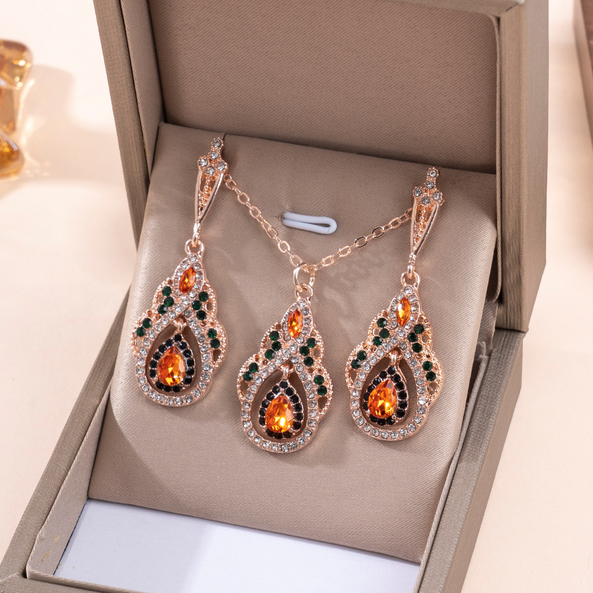 Europe and the United States cross-border hot-selling retro ethnic style diamond necklace earrings Halloween light luxury jewelry suit
