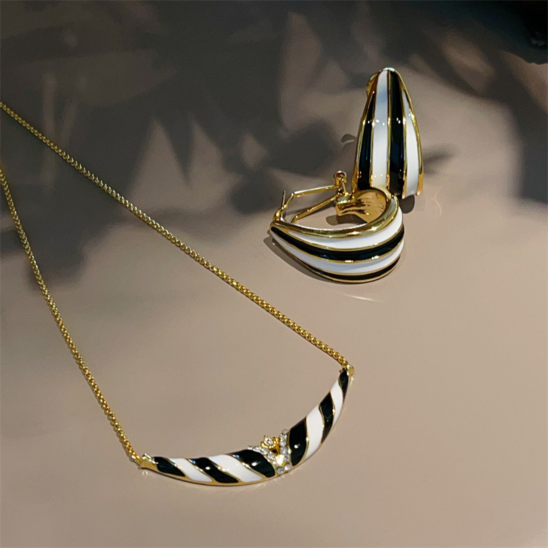 High-Grade 18K gold plated black and white striped earrings personality trendy suit niche sweater chain fashion jewelry