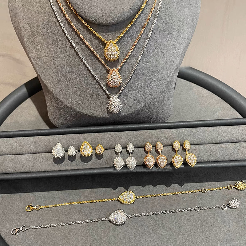 Light luxury niche design high-end feeling drop-shaped dew drop water drop twist chain necklace earring bracelet ring wholesale