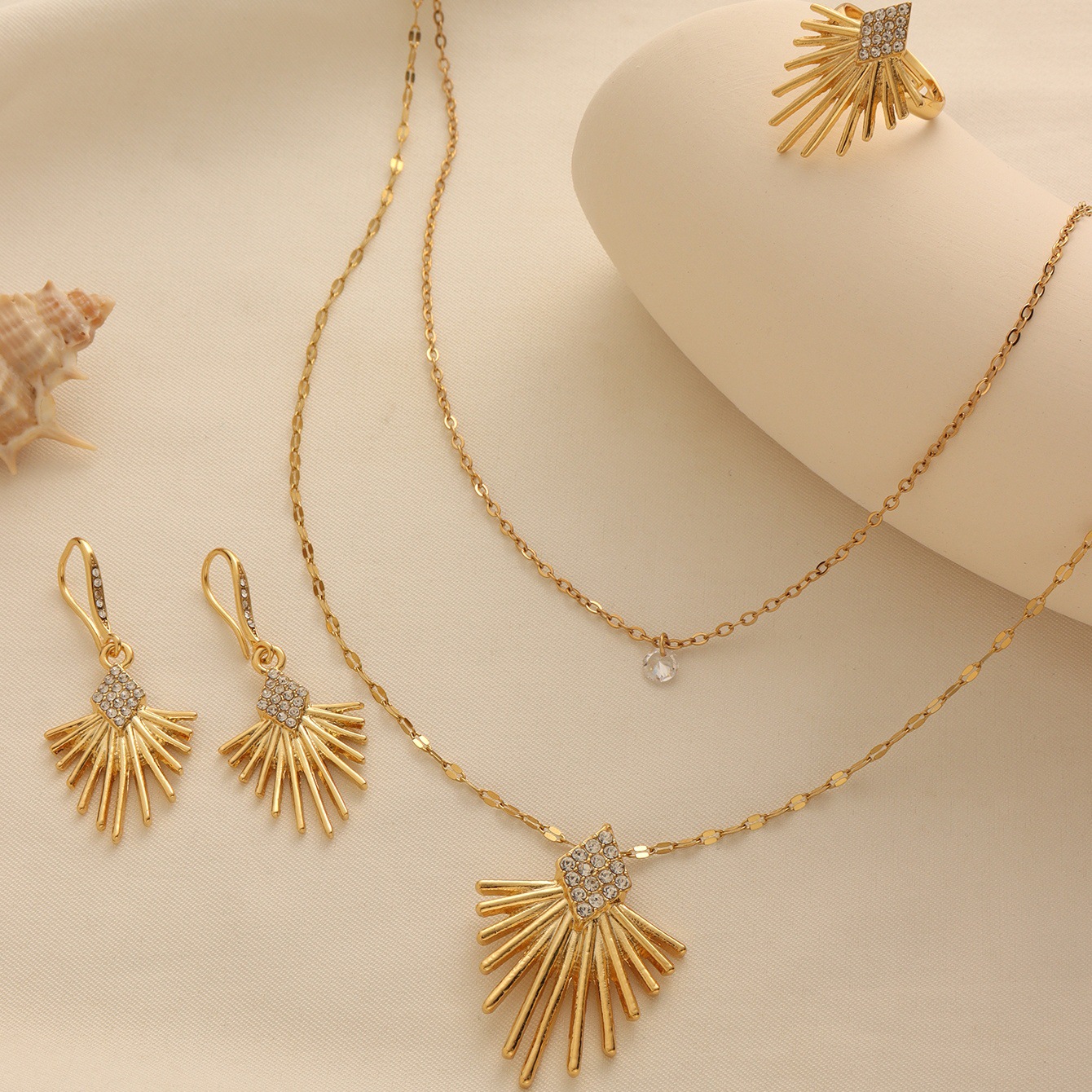 European and American Cross-Border Supply of Light Luxury High-End Pendant Necklaces, Gold-Plated Copper High-End Textured Earrings, Wedding Accessories