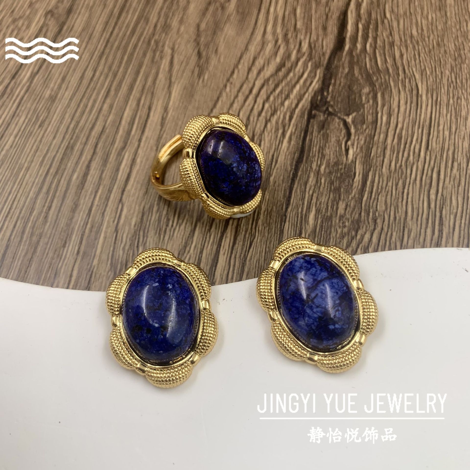 Niche Flower Brass Lapis Lapis Lapis Lapis Silver Needle Earrings Plated Real Gold Design Sense Oval Elegant Elegant Middle Ancient Earrings