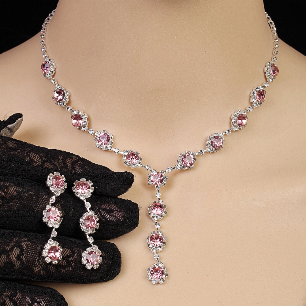 High-End European and American Bridal Zircon Jewelry Set Bridesmaid Earrings Necklace Combination Feminine Gorgeous Jewelry