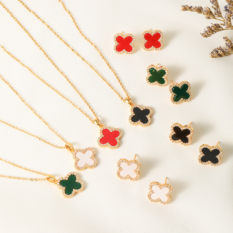 Cross-border e-commerce hot-selling fashion four-leaf clover necklace earring set inlaid zircon ins niche design jewelry