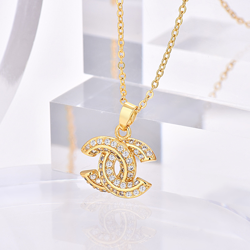 Trendy Internet-Famous Diamond-Studded Double C Necklace for Women, Ins Style, Light Luxury Niche Design, High-End Clavicle Chain Necklace Accessory