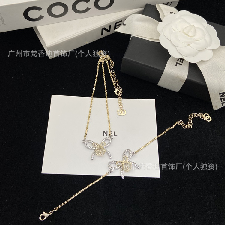Grandma Xiang 25K New Bow Diamond Pendant Necklace Retro Elegant Exquisite High-End Small Fragrance Necklace